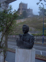 Hay una del sábado que la pongo, pero es como si la máquina hubiese tenido un fallo y hubiese salido eso, parece un cuadro abstracto, no la he tocado para nada, es la primera pequeña. La foto que tiene la letanía de Pérez Galdos en su novela "Gloria" está sacada en la playa del Camello y el famoso camello se puede ver en otra de las fotos, ésta sacada en verano. Hay una foto que tiene un busto, es el busto con mal gusto de Jorge Sepúlveda, un cantante de la prehistoria del siglo XX que hizo famosa una canción titulada "Santander" y otra, "Mirando al mar" que estaba inspirada en una mirada a la bahía de Santander desde el hotel Real, que está justo detrás del castillo, se puede apreciar la humedad del ambiente. Tenía también otra canción que se titulaba Santander, tenía mérito pues el tal cantante era mallorquín. Espero que os gusten. Como es habitual pinchando en las fotos, se amplían.